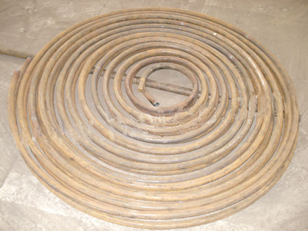 简单的来讲:蚊香盘管就是是由原来一大卷的铜管弯,经过加工制成长度由15米到300米不等规格的盘管产品罢了,这样以便用于铜管产品的热处理、运输及现场安装配管等。此外,因经过加工处理的盘管外形形状与蚊香近似,故叫蚊香盘管。传统的蚊香盘管生产方式,是先把铜管加工成所需长度的直管,然后再人工喂料给弯管机,盘制成蚊香盘管。